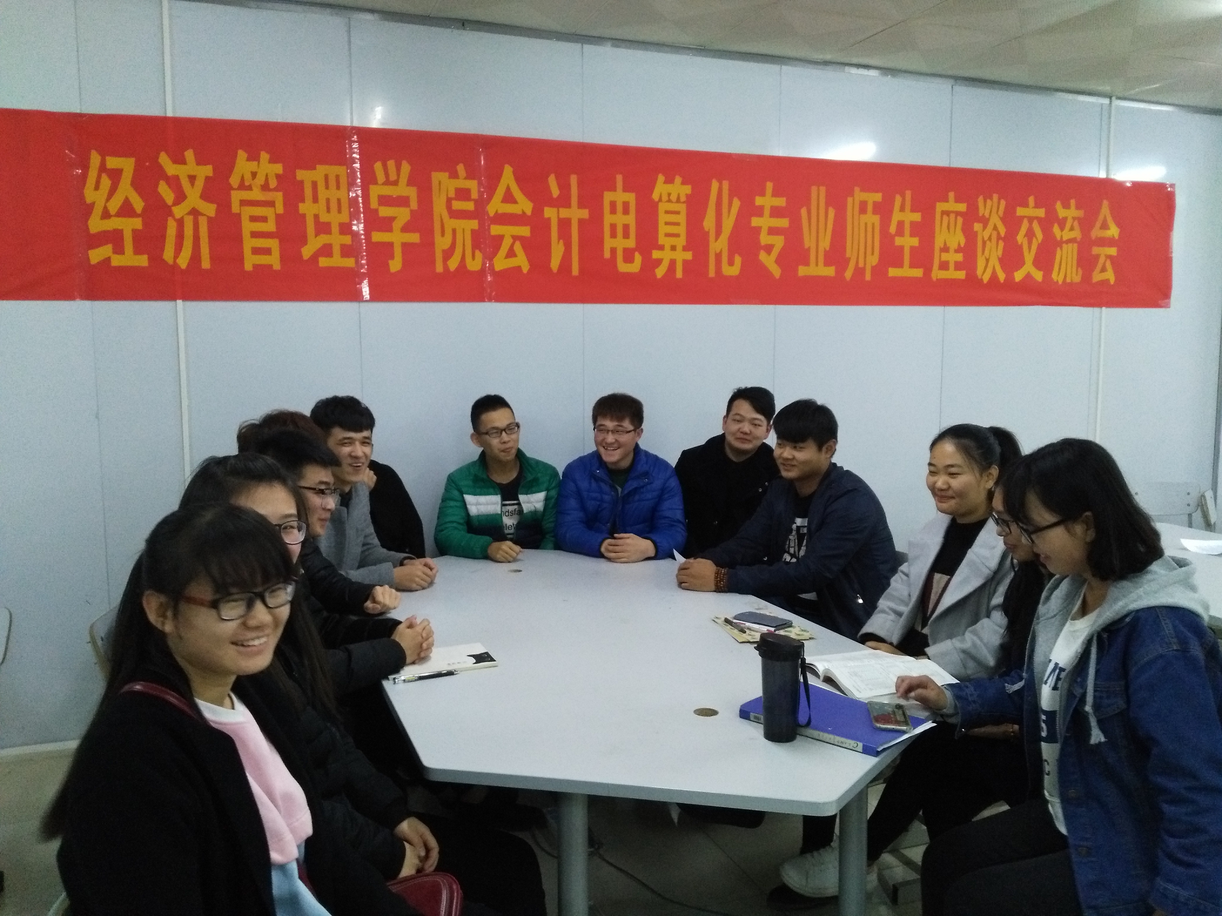 11月9日教研室组织了2015级会计专业学生座谈会,会上学生针对开学以来课堂、实训的情况踊跃发言,学生代表表示会计教研室所有的老师们都很敬业、认真备课,都是他们喜爱的老师,学生喜爱老师的原因是辛勤授课、多能、有爱心,白老师早上7:30之前就到教学与学生共同学习;姜云担任同一个班的两门课,每门课都很专业,学生很佩服;张如意老师对学生要求很严格,也对学生很有爱心,还有王桂荣、徐联云、管程程、陈丽娴等老师对学生的疑难为题能够耐心解答。老师们认真、严谨的工作态度,对学生起到了言传身教的作用。专业老师对学生提出了要多读书,除了读专业书籍外还要多读国内外名著,提高对社会的认识。会上也为同学们介绍了会计职业发展的几种途径,可能遇到的问题,大二阶段是专业学习的关键阶段,是打基础的阶段,要求学生静下心不急不躁。
