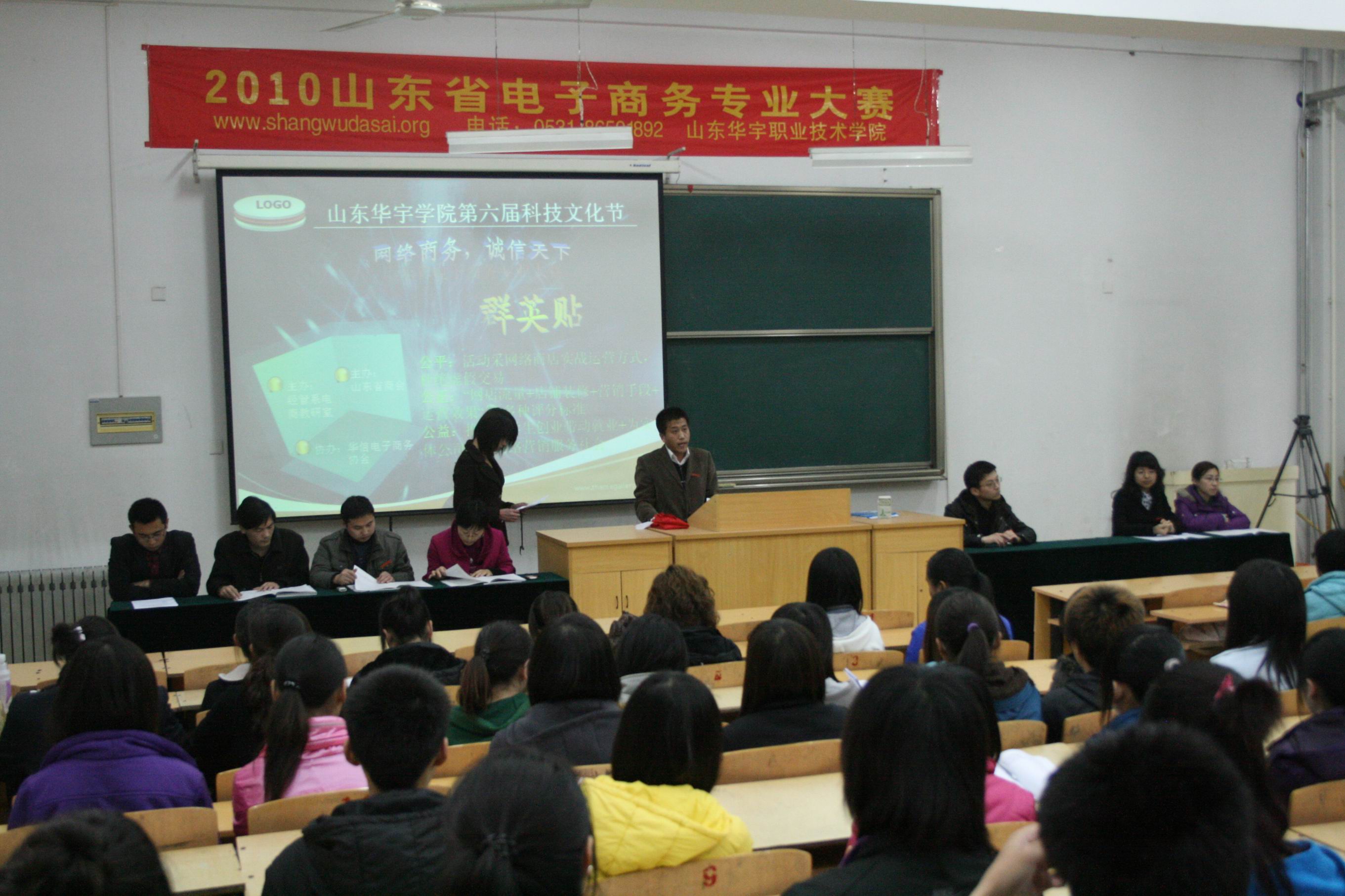 为响应学院第六届科技文化艺术节的号召,进一步推广和普及电子商务现代流通技术应用,提高电子商务从业人员的整体专业知识和职业能力水平,带动世俱杯sjb官网在校大学生主动创业和自主择业,我系举办2010年山东华宇职业技术学院电子商务网络创业大赛。