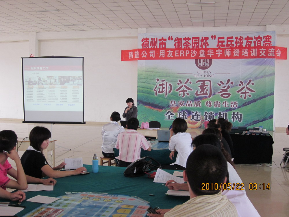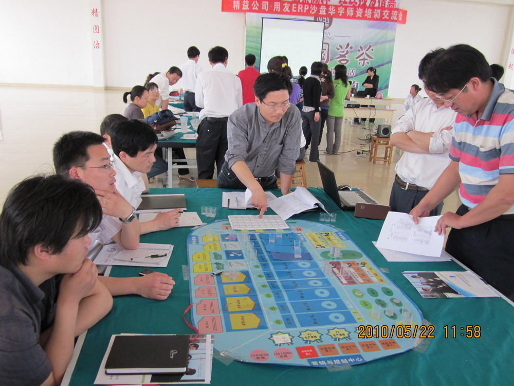 为加深教师对企业经营管理的进一步认识,经济管理系于2010年5月22日在华宇学院大学生俱乐部承办了德州精益公司用友ERP沙盘培训,世俱杯sjb官网经济管理系主任张开涛、教学主任孔建华、我系30余名教师以及德州学院、德州职业技术学院、德州科技职业学院10多名教师代表共同参加了此次培训。该培训以物理沙盘为主,由用友ERP公司的培训人员为各位老师讲解沙盘大赛比赛规则。