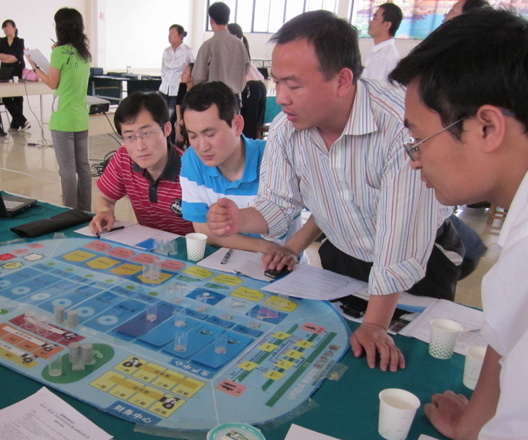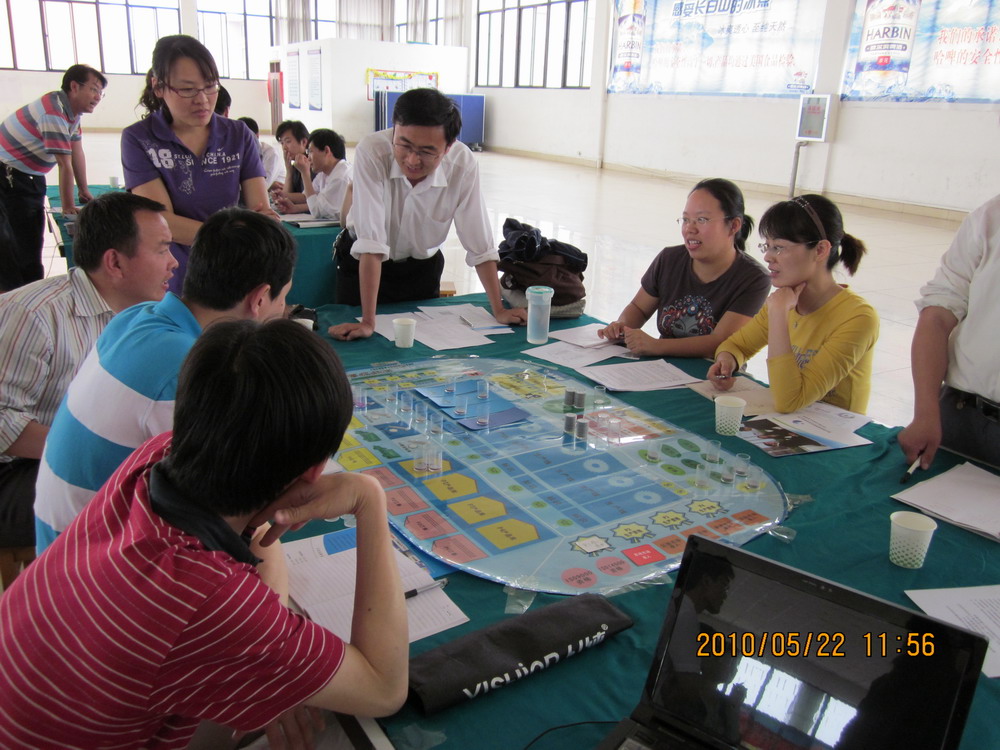 本次培训共48名教师,随机组成6组组建虚拟公司,进行经营对抗。各小组自行组建CEO、CFO、 CMO、COO、CPO等企业运营团队,经过4个年度的模拟经营,6个组(公司)经营业绩各有不同:有的企业在运营团队的领导下,业绩良好;有的企业由于经营不善资不抵债而倒闭提前出局;还有的公司在不断地亏损中。但其中的三家公司在全体成员的努力下逐渐扭亏为盈。