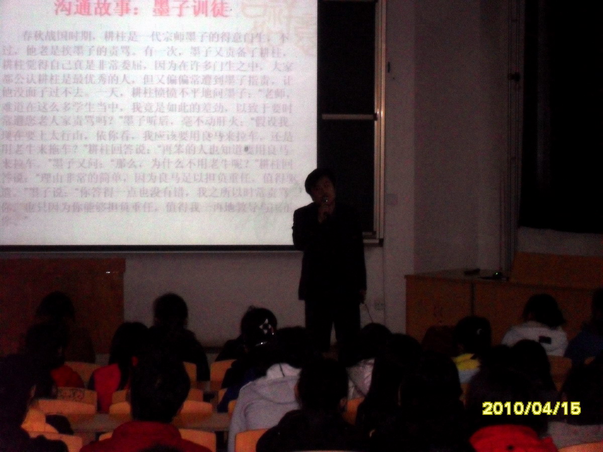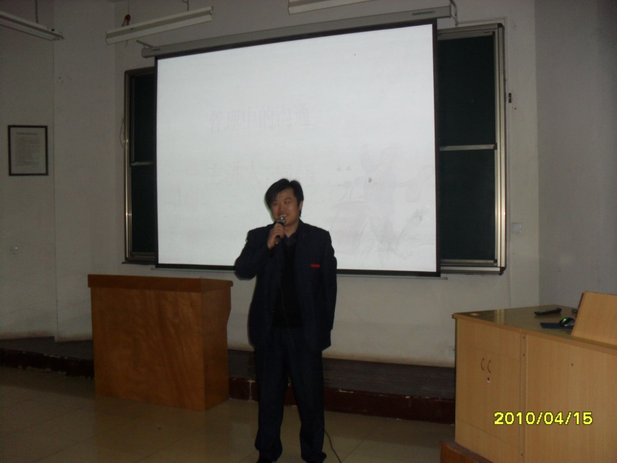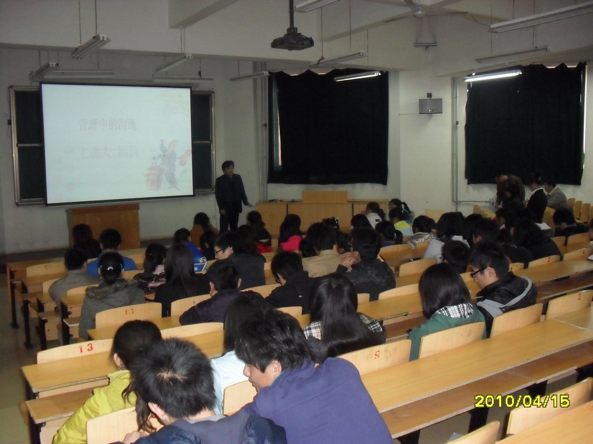 2010年4月15日,物流管理教研室主任周兵老师在7#201进行了以“管理中的沟通”为主题的讲座。通过本次讲座,同学们学习到如何与同学、老师沟通,学习到今后的工作中与领导、与同事、与客户之间的沟通艺术。周兵老师通过很多生动有趣的事例阐述出深刻的含义,让同学们在轻松快乐的氛围中,学到很多课本与课堂涉及不到的沟通艺术和技巧。同学们表示听了本次讲座收获颇多。
