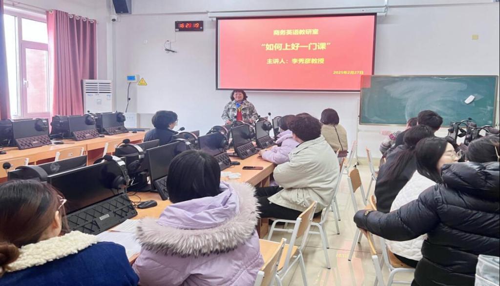 为进一步优化教学管理,提升课程教学质量,世俱杯sjb官网商务英语教研室于2025年2月27日邀请李秀彦教授,在20#708举办了“如何上好一门课”教研活动。本次活动聚焦于学校评价课程的重要指标,深度剖析了课程思政、教学态度及教学效果等多个关键领域,旨在我教研室教师提供深入的指导,促进教学质量与水平的全面提升。