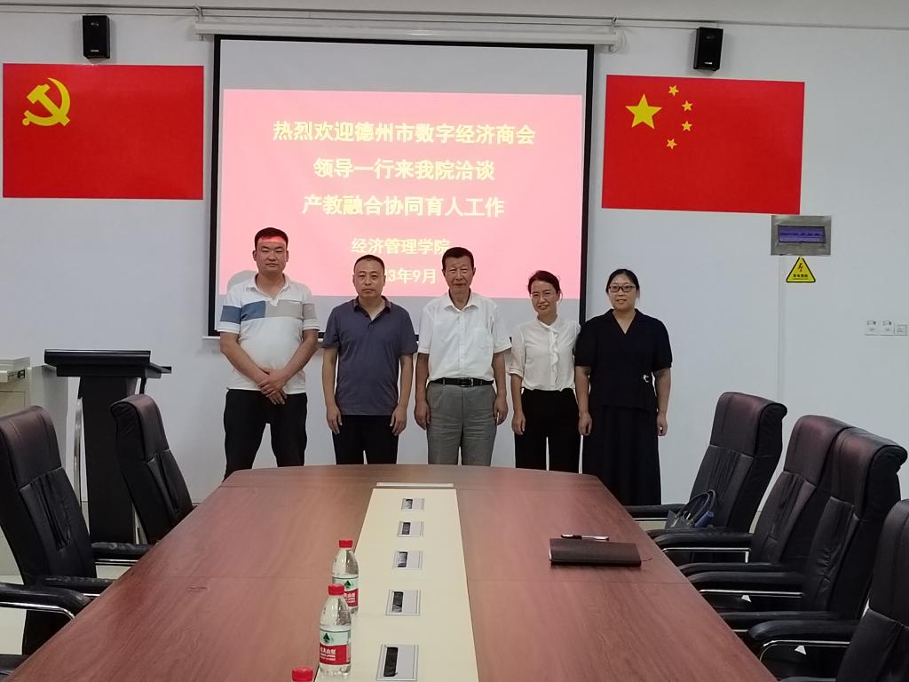 2023年9月12日德州市数字经济商会领导一行来世俱杯sjb官网洽谈产教融合协同育人工作。双方对坚持走产学研结合之路,服务地方经济发展,助推数字德州建设等内容进行深入洽谈。