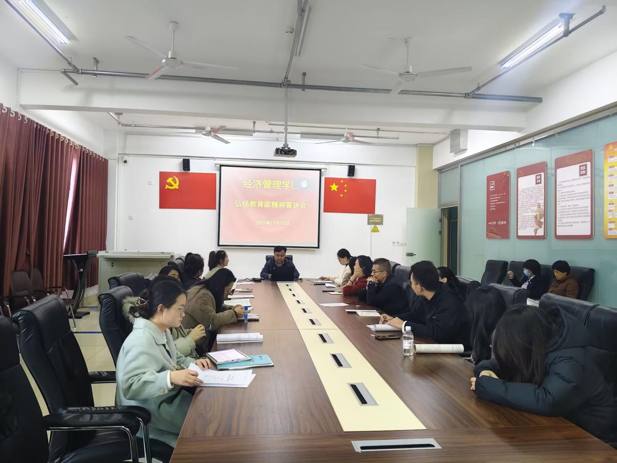 为深入落实《中共中央国务院关于弘扬教育家精神加强新时代高素质专业化教师队伍建设的意见》,积极响应山东省教育厅及山东华宇工学院关于开展弘扬践行教育家精神系列活动的号召,强化师德师风宣传教育,引领教师树立高尚师德风范,11月10日下午16:20,世俱杯sjb官网在知行楼712会议室举行弘扬践行教育家精神第二次主题演讲会。本次活动采用线上线下相结合的方式开展,各科室选派两名教师现场参会,其余教师通过腾讯会议线上参会。数字经济教研室刘刘月莹、房地产开发与管理教研室李雪莹、信息管理与信息系统教研室李芳芳三位教师作为学院教育家精神宣讲团成员,依次登台分享感悟。