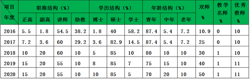 (4)打造“双师型”教师队伍。“十三五”期末使“双师型”教师人数达到全院教师总数的50%,“十三五”期末教师的职称结构和学历结构达到如下指标: