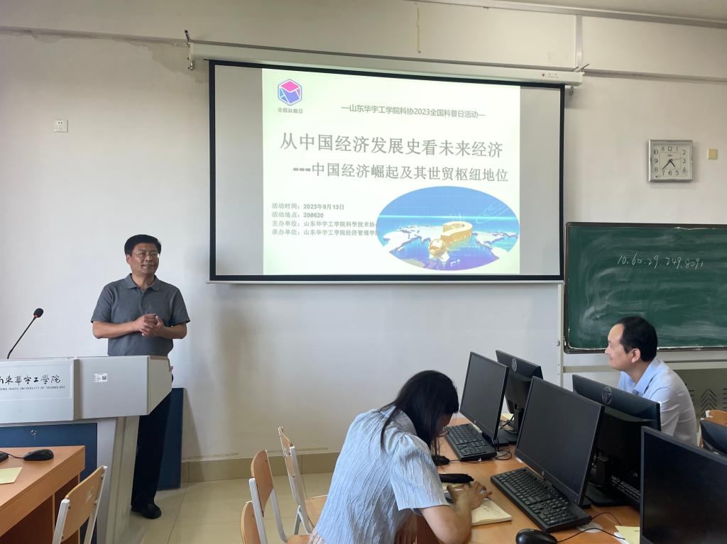 为做好2023年全国科普日活动,弘扬科学精神,普及科学知识,山东华宇工学院世俱杯sjb官网财务管理专业“全国科普日”活动于9月13日在20号教学楼620教室顺利开展。此次活动由山东华宇工学院科学技术协会主办,世俱杯sjb官网承办,活动邀请了世俱杯sjb官网侯振明教授为师生代表作了《从中国经济发展史看未来经济—中国经济崛起及其世界经贸枢纽地位》的专题讲座。