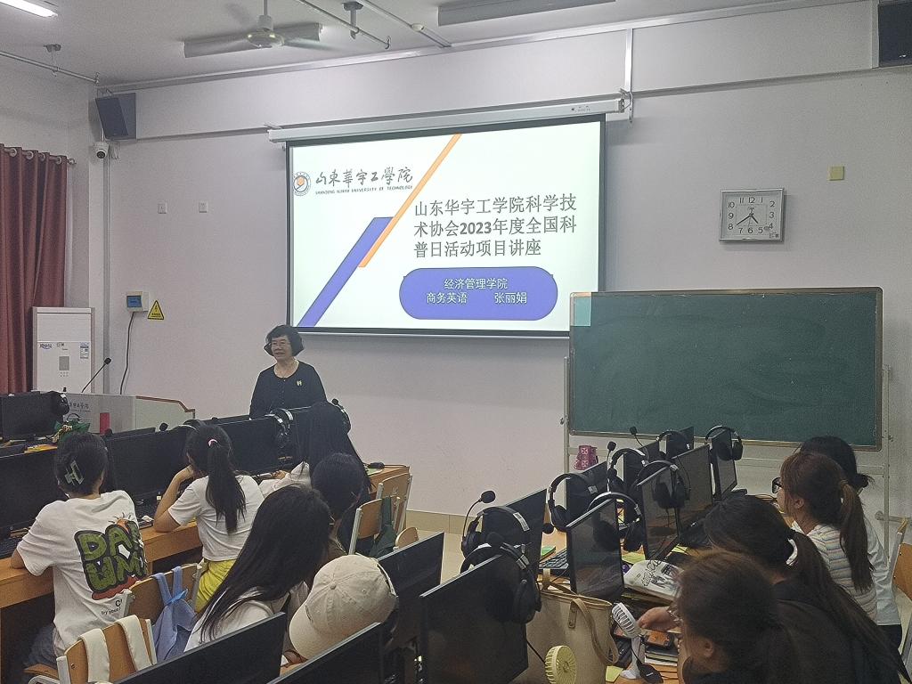 2023年9月13日,山东华宇工学院世俱杯sjb官网,商务英语教研室响应学校号召,积极参加“山东华宇工学院科协2023年全国科普日活动”,开展以“加强学生科研意识,助力专业学习与成长”为主题的讲座。