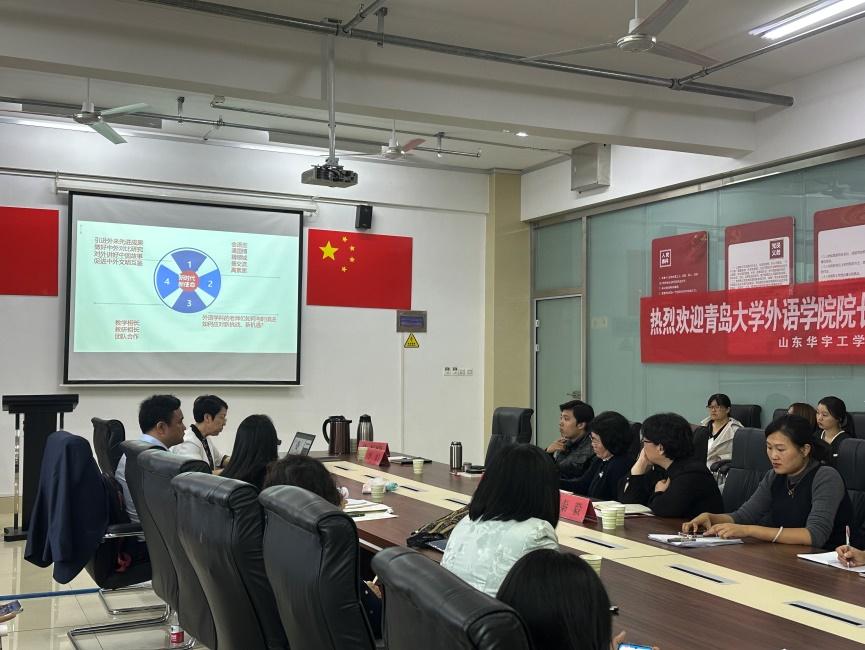 为落实山东华宇工学院提升教师教科研能力的工作部署,营造教师热爱教学、投身科研的良好氛围, 2023年11月3日我院商务英语教研室邀请青岛大学外语学院院长卞建华教授来院为教师举办了 “新时代高校外语学科教师科研能力提升路径”的学术讲座。