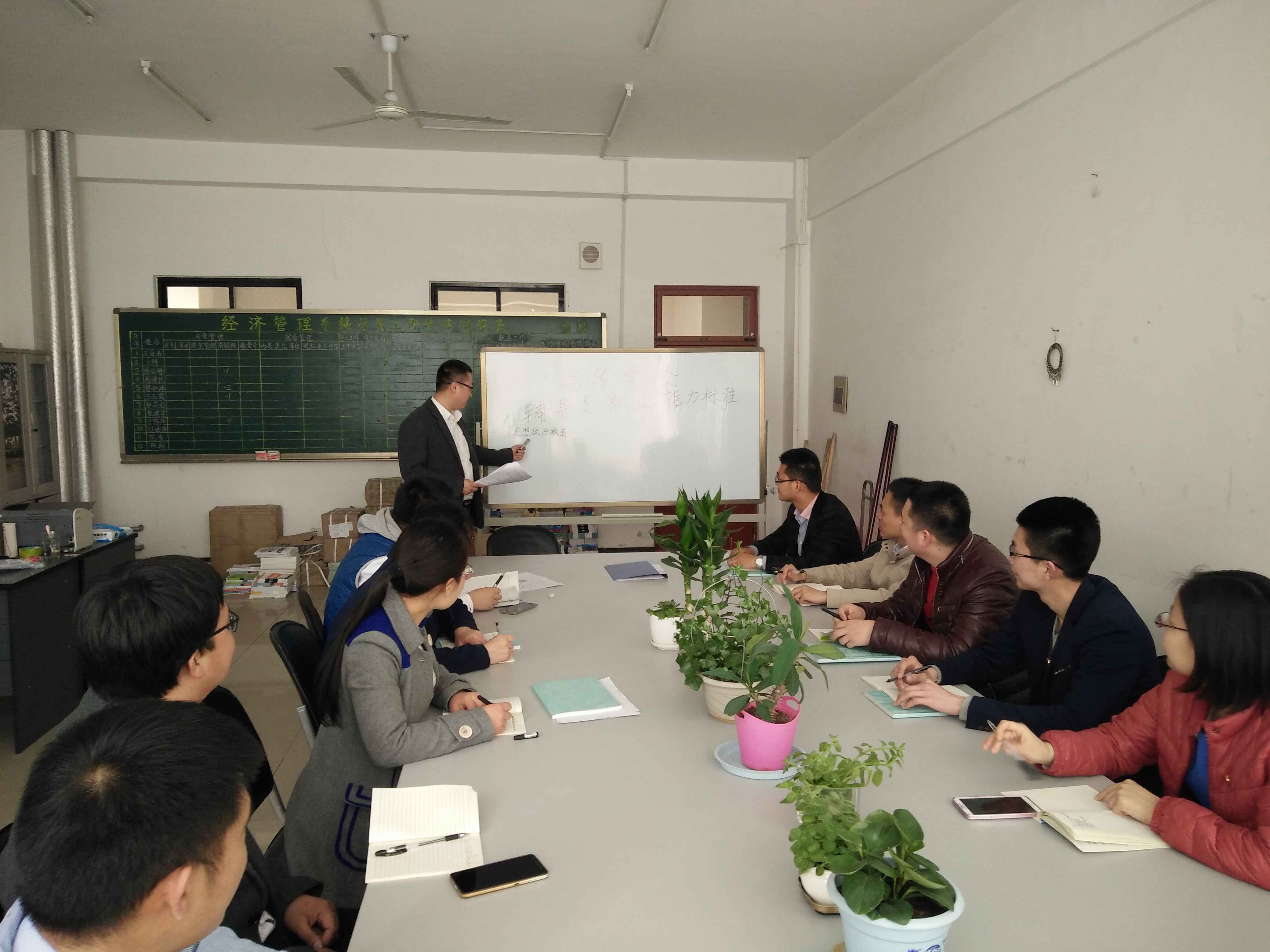为进一步贯彻落实学生处工作要求,加强辅导员队伍建设,促进辅导员队伍专业化、职业化发展,提高辅导员的综合管理水平。3月21日下午,经济管理系组织本部门全体学管人员,在10号楼419开展集中学习活动—“学习高等学校辅导员职业能力标准(暂行)”,主讲人经管系主任助理范世伟。