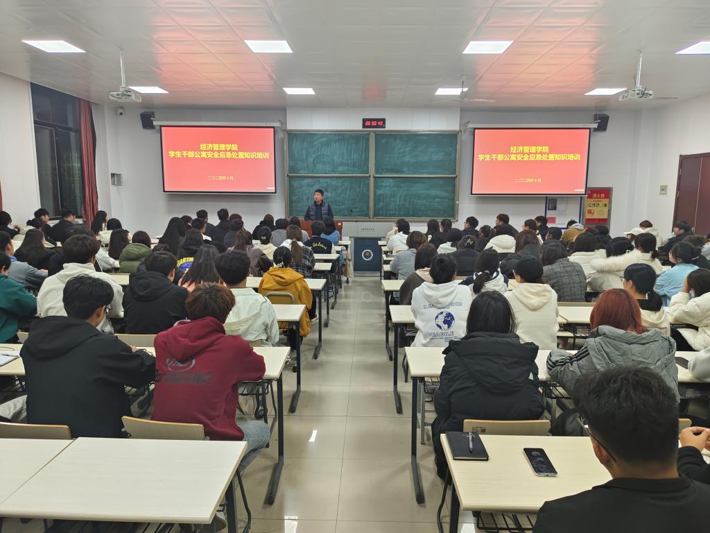 为进一步增强世俱杯sjb官网学生干部的公寓消防安全意识及应急处置能力,2024年10月20日,世俱杯sjb官网在10号楼710—2组织开展了公寓消防安全应急知识培训会,本次培训会由管理科科长王俊彬主讲,120余名主要学生干部、安全信息员参加培训会。