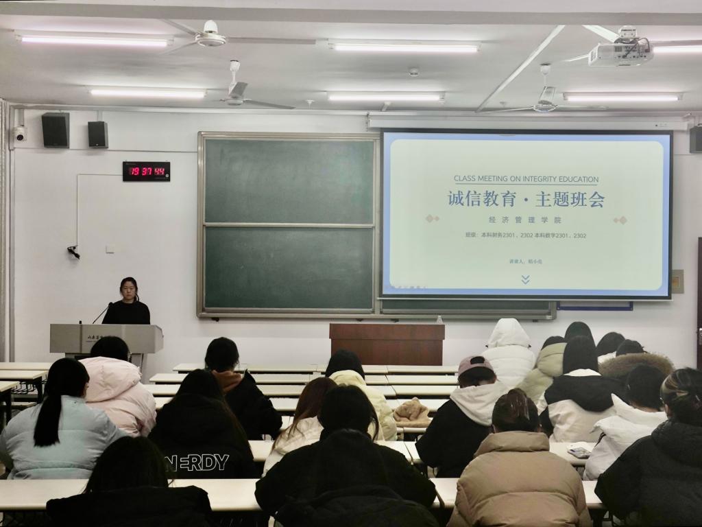 为了进一步强化学生的诚信意识和纪律意识,培养学生养成遵守考试规则、诚实守信的良好品质,维护考试的公平公正,营造一个良好的学习和考试氛围。经济管理学院于12月813日以班级为单位开展了“筑梦未来,诚信为基”诚信教育主题班会。