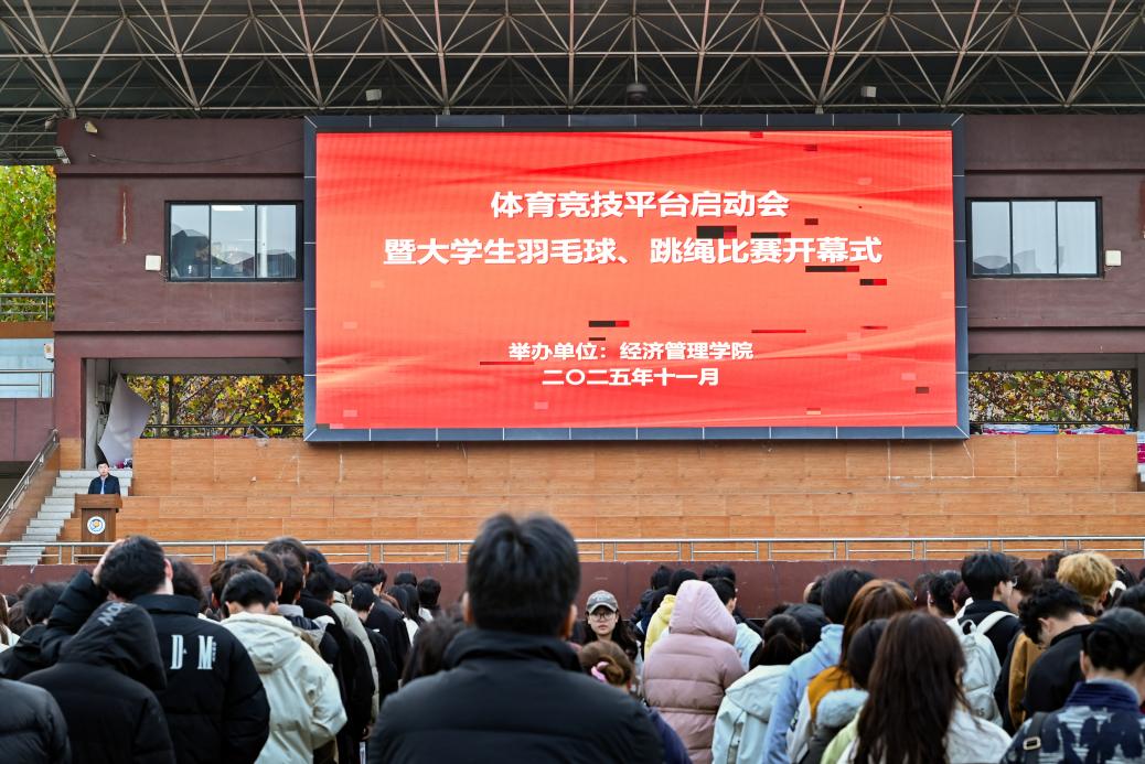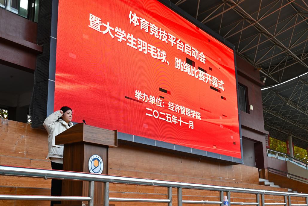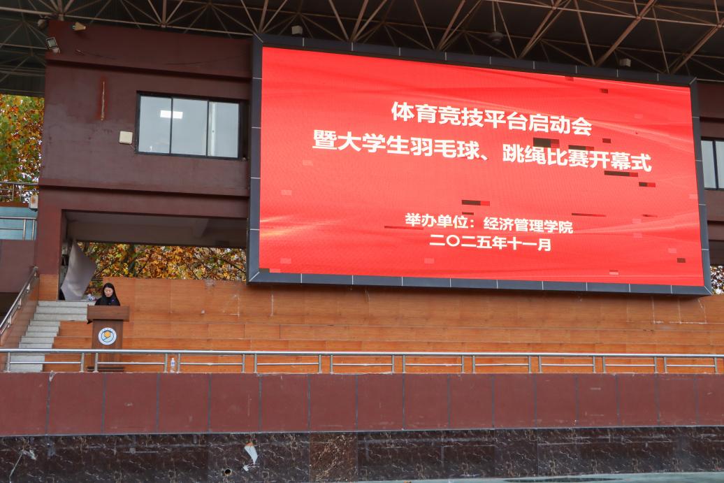 为进一步推进第二课堂育人工程建设,充分发挥第二课堂在人才培养中的重要作用丰富体育竞技平台课程内容,突出培养学生个性化发展2025年11月10日,院在学校体育运动场举行体育竞技平台启动会暨大学生羽毛球、跳绳比赛开幕式赛事负责老师、各班级辅导员及学生代表共同参加仪式由团总支书记王群主持