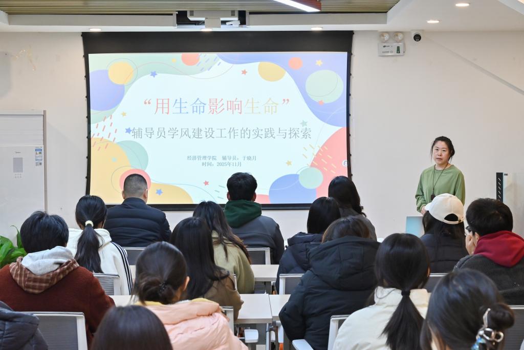 分享会设置两大核心环节,层层递进传递榜样力量。第一环节为辅导员学风建设经验分享,世俱杯sjb官网优秀辅导员于晓月老师“根植优良学习习惯,涵养严谨治学态度”为初心,在学风建设中扛起“引导者、解读者、守护者”三重使命,着力推动学风建设从“外在要求”向“内在觉醒”深度转型。她秉持“用生命影响生命”的育人理念,双轮驱动深耕学风建设“根基工程”:一方面以精准化引导为抓手,针对不同学情学生量身定制成长方案,精准破解学业困惑;另一方面以宿舍共建为纽带,搭建集体互助平台,凝聚奋进合力,最终构建起“育人有温度、学习有氛围、成长有方向”的学风建设新格局,成效广受师生认可。