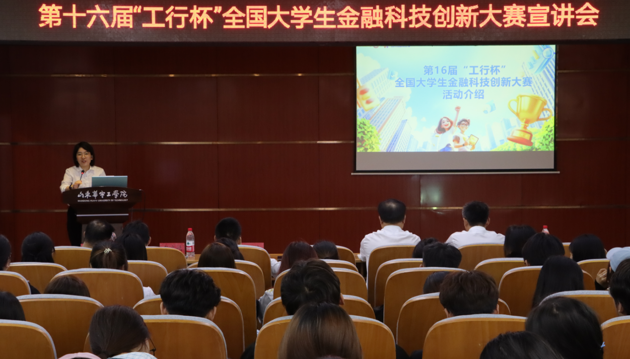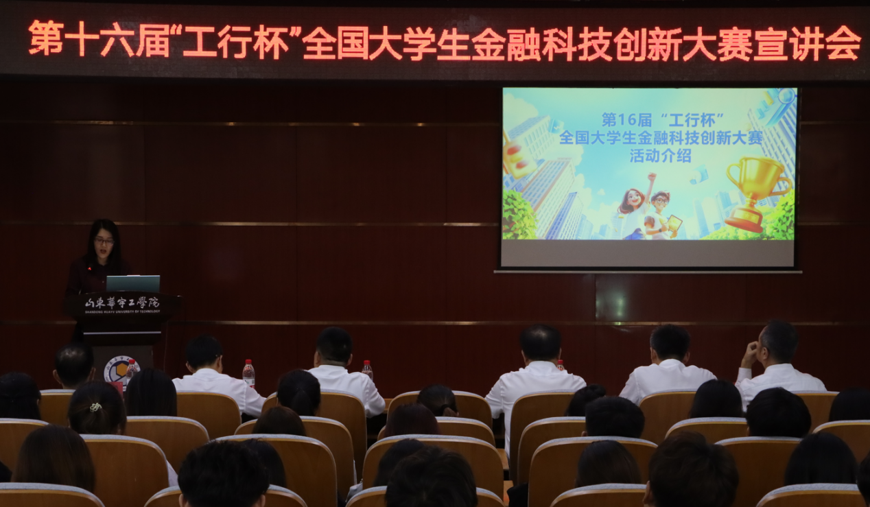 金秋送爽,硕果盈枝。2025年9月25日下午,世俱杯sjb官网成功举办第十六届“工行杯”全国大学生金融科技创新大赛山东华宇工学院校园宣讲会。中国工商银行山东省分行金融科技部总经理助理孙光福、创新管理科科长杨茜,德州分行副行长武海涛、金融科技部总经理盛荣春、副总经理郭超、经理孙传智等一行领导莅临世俱杯sjb官网,对世俱杯sjb官网学科竞赛的开展进行了专业指导。世俱杯sjb官网院长于维同、院长助理李娟、团总支书记王群、专业教师代表以及对金融科技充满热情的近两百名学生出席了此次会议,会议由房地产开发与管理教研室主任管程程主持。