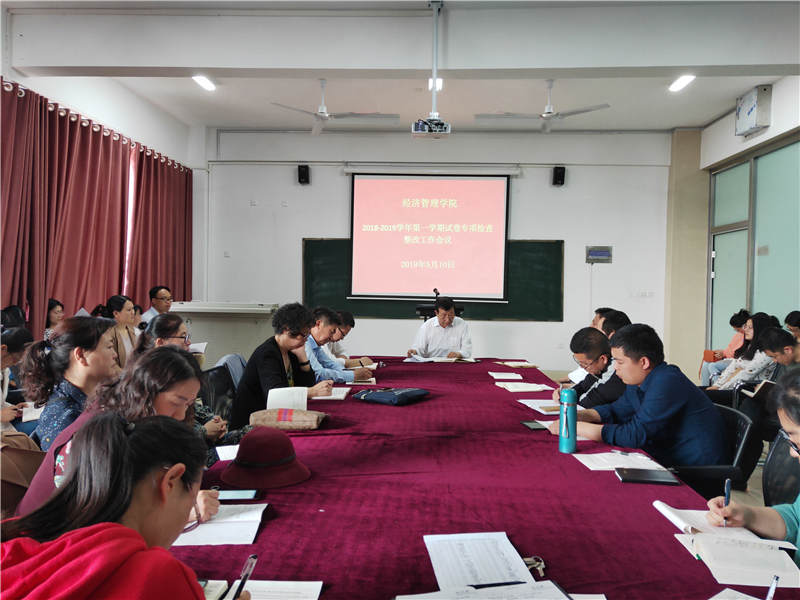 试卷能体现教师的教风、学生的学风和教学管理水平,为了更好的做好试卷检查整改工作,世俱杯sjb官网于5月10日召开了2018-2019学年第一学期试卷专项检查整改会议。会议由院长于维同主持,全体教师参加了会议。