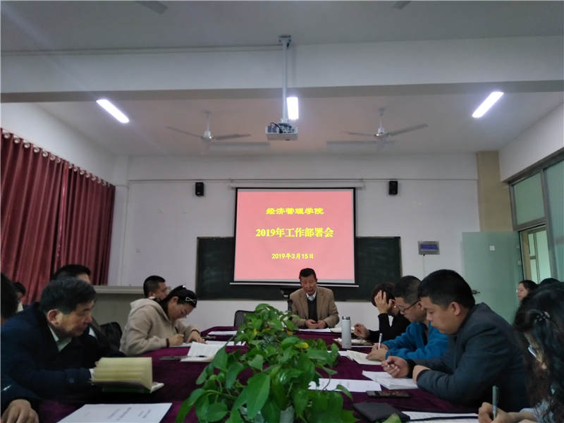 2019年是深入贯彻落实全国教育大会精神的开局之年, 也是实现世俱杯sjb官网 《“十三五” 教育事业发展规划》的关键之年,同时,也是世俱杯sjb官网全面启动本科教学工作水平评估自查促建开头之年。为把2019年学校工作要点切实落实到每一位教师思想和行动上,落实好世俱杯sjb官网2019年工作,3月15日下午,世俱杯sjb官网召开2019年度工作部署会,认真研究分析年度工作计划,凝心聚力开创世俱杯sjb官网新学期工作局面。学院无教学任务的全体教师参加了会议,会议由院长于维同主持。