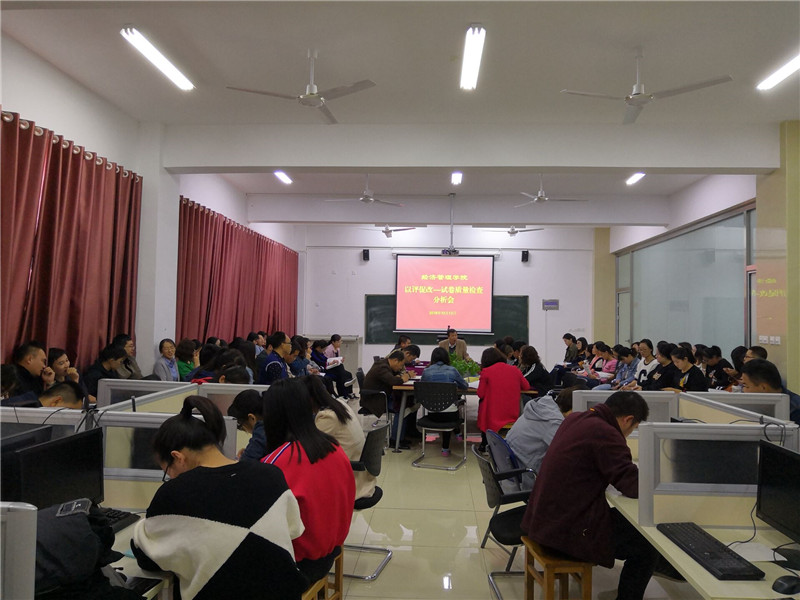 试卷是检查教师乃至学校教学成绩的一项重要教学材料,是本科质量评估重要的参评材料。为了更好的规范试卷的命题及批改工作,世俱杯sjb官网于10月12日在科研教学楼712召开了“以评促改,试卷质量检查分析”会议,院长于维同主持会议,全体教师参加了会议。