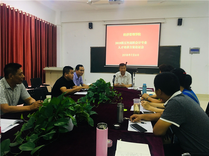 本次论证采取“专业汇报+专家提问”的形式进行。会上,教研室主任魏正涛老师对五年一贯制高职会计专业人才培养目标、人才培养模式、课程体系构建思路、核心课程设置、各类别课程学时分配、教学模式、素质提升课程计划与管理、顶岗实习、毕业环节及答辩安排等进行汇报。与会领导对魏老师汇报内容进行了充分讨论,并对教学进程和培养模式达成共识。