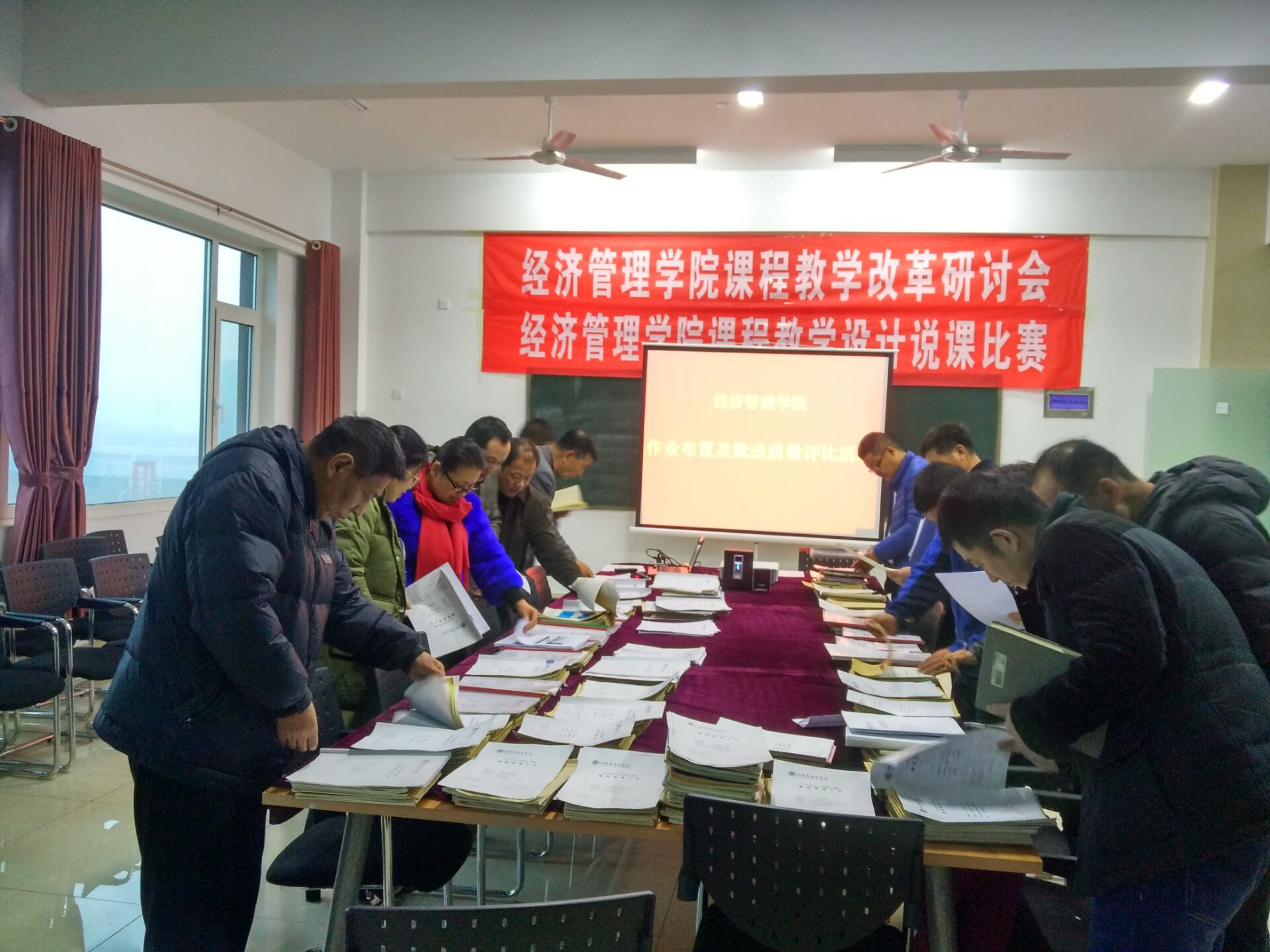 为进一步规范作业布置及批改质量管理,查找问题与不足,根据《“教师如何教好一门课”活动实施方案》要求,世俱杯sjb官网开展作业布置及批改质量评比活动。活动分为两个阶段,第一阶段各教研室教师作业布置及批改质量评比活动,对本科室所有教师所有课程的作业进行评比,并评选出每位老师最优秀的一门课程作业参加学院评比。12月14日下午,第二阶段的院级评比活动在20#712顺利开展。