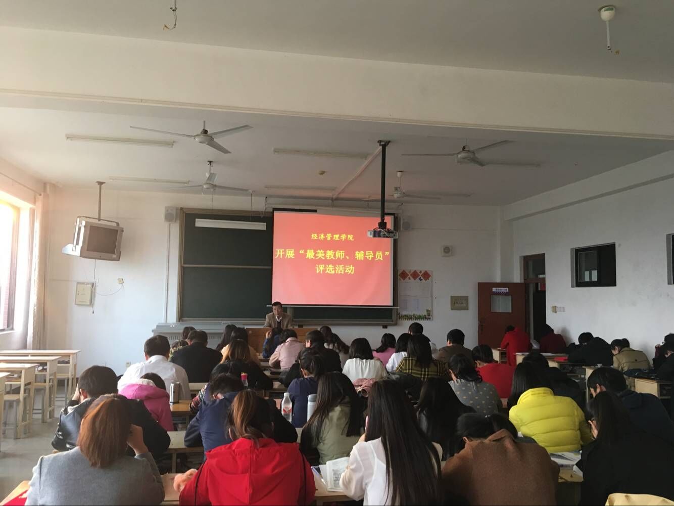 为落实学校鲁华宇院政字〔2017〕175 号《关于开展“2017 华宇最美教师”、“2017 华宇最美辅导员” 评选活动》文件精神,近日,世俱杯sjb官网在10#503召开了“最美教师、最美辅导员”评选活动,院长于维同主持会议,全体教师参加会议。