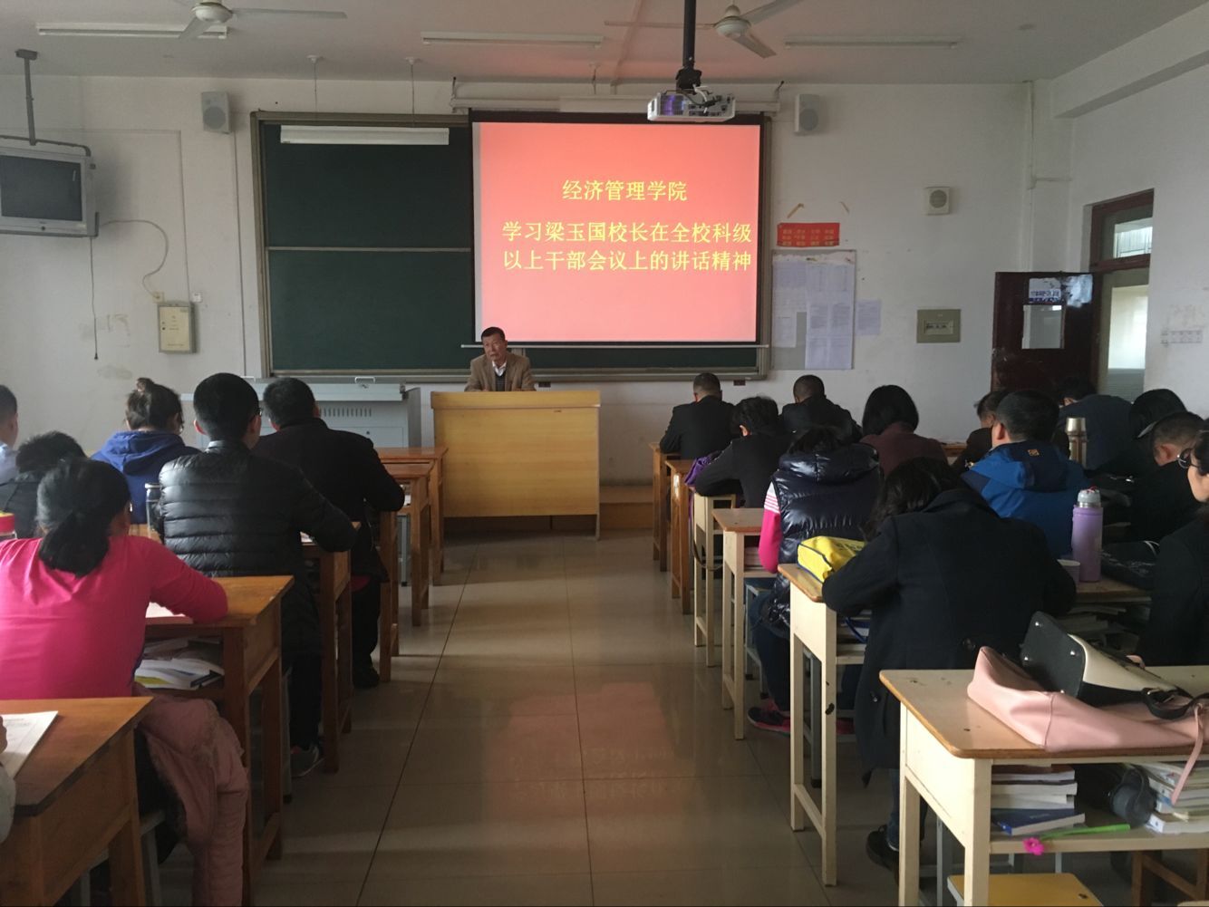 10月27日,世俱杯sjb官网召开全体教职工大会,组织学习梁校长在全校科级以上干部会议上的讲话精神,院长于维同主持了会议,经管学院全体教师参加了会议。
