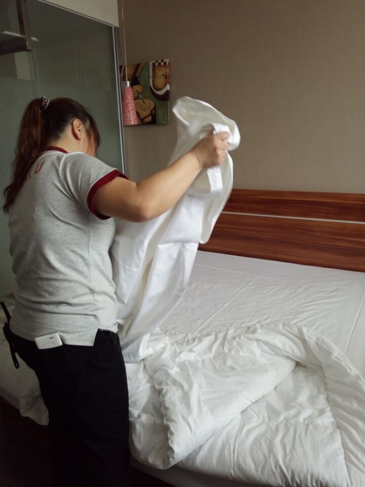 客房服务人员示范做床