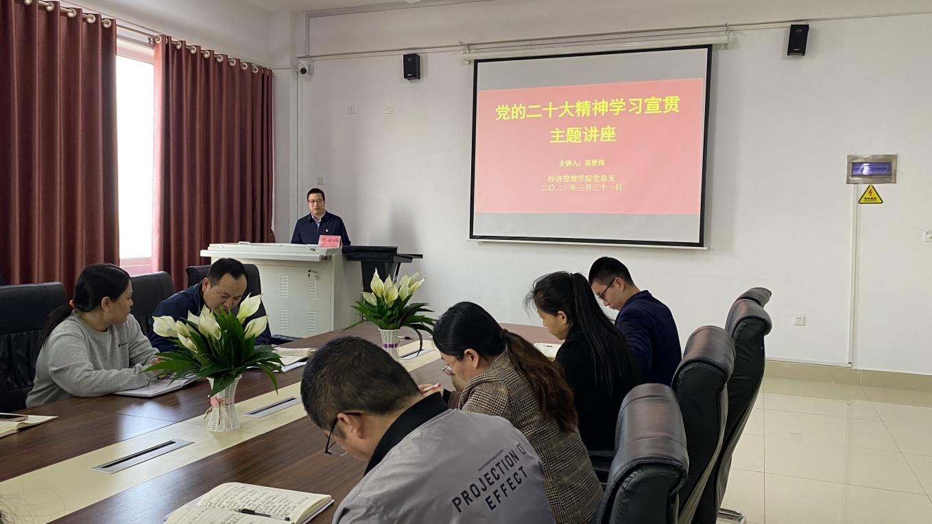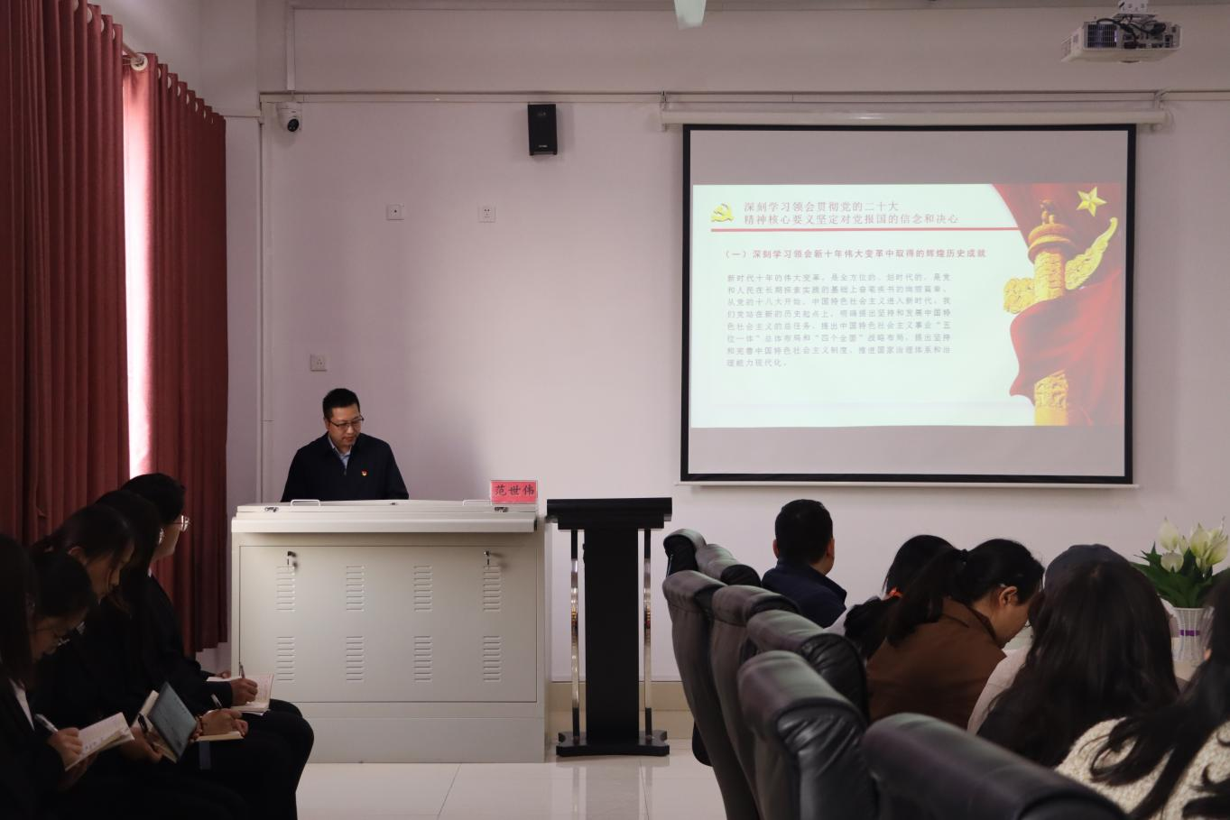 为促进党员师生认真学习领会二十大报告精神,掌握核心要义,理解精神实质,推动学习宣传贯彻党的二十大精神走深走实,3月31日,在20号楼712会议室,世俱杯sjb官网党总支开展了党的二十大精神学习宣贯主题讲座,邀请了党总支书记范世伟带领大家共同学习,各党支部书记、委员、党员代表、预备党员代表、入党积极分子代表参加了此次讲座。