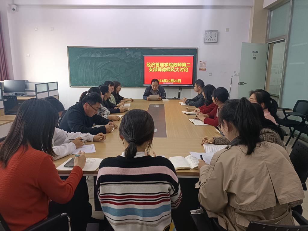 2023年10月23日,世俱杯sjb官网教师第二党支部全体党员在20号楼718召开了师德师风大讨论会议。此次会议旨在提高教师对师德师风的认识,倡导并弘扬崇高的师德师风,加强教师队伍的建设,提高教师素质。