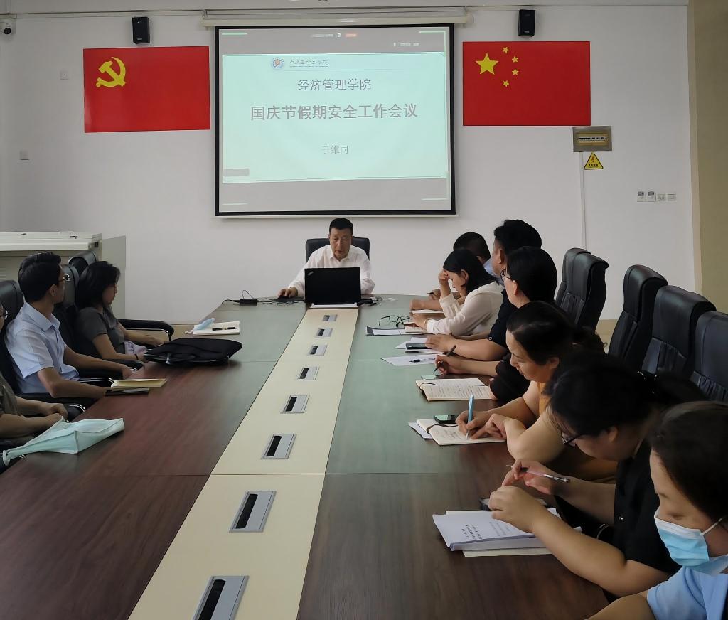 9月29日,世俱杯sjb官网专题召开国庆节假期安全工作会议,对安全各项工作进行全面部署。戴明、范世伟、王钢、李娟及各科室副科级以上干部参加会议,院长于维同主持会议并提出工作要求。