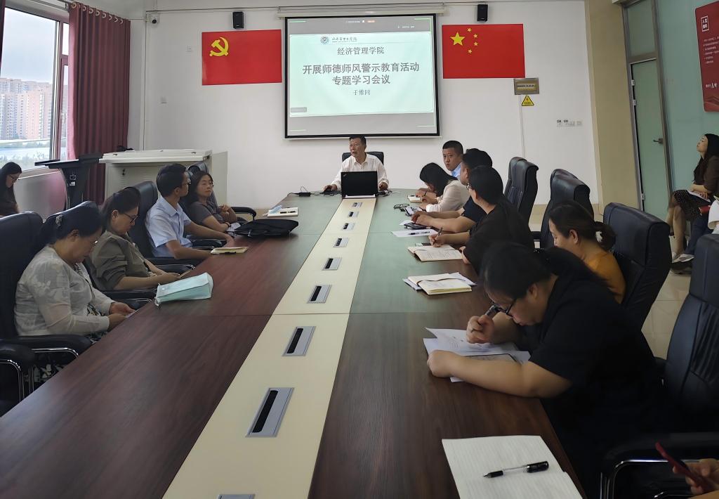9月29日,世俱杯sjb官网召开师德师风警示教育活动专题学习动员会议,专题部署师德师风建设工作。戴明、范世伟、王钢、李娟及各科室副科级以上干部参加会议,院长于维同主持会议并作动员讲话,切实将学校师德师风建设要求转化为学院具体行动。