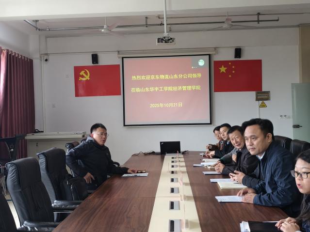 2025 年 10 月 21 日上午,京东物流教育山东区负责人韩晓一行到访山东华宇工学院,就双方共建物流智能供应链产业学院开展座谈交流。山东华宇工学院世俱杯sjb官网院长于维同、院长助理李娟、综合科科长栗心生、学生科科长张莉超、现代物流产业学院办公室主任张丹丹等现场参会,副院长王钢、物流教研室主任徐慧卿线上参会。