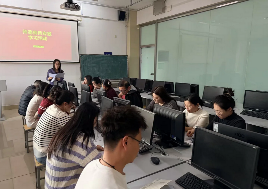 活动开始,管程程主任带领大家系统学习了师德师风相关准则与规范,并结合学校、学院年度建设工作要求进行解读。针对房地产专业特点,会议明确了在教学、实训、论文指导等具体环节中的师德正面清单与负面行为底线,要求教师时刻自重自省。随后,大家集中观看了警示教育片,通过学习师德失范典型案例,深刻汲取教训,进一步强化了规矩意识与自律意识。
