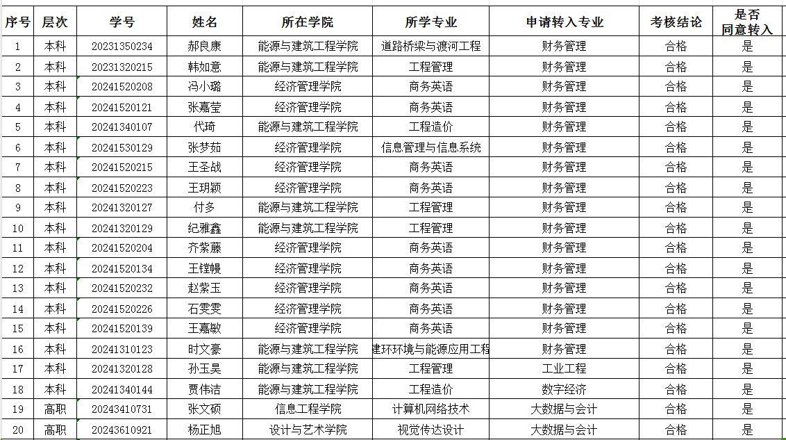 根据《山东华宇工学院关于做好学生转专业工作的通知》的相关要求与规定,经学生申请、学院审核、教务处复核、学院考核,拟接收转专业学生20名。现将名单予以公示,公示期为2024年12月11日—12月13日。
