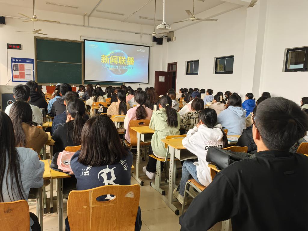 《新闻联播》作为中国收视率最高、影响力最大、全国人民最爱观看的电视新闻栏目,信息极具潜在价值,本次活动一经在第二课堂发布,同学们积极踊跃报名,并对这一活动表示非常欢迎。活动采用了集中观看和个人分散观看两种形式,其中现场在教室集中收看《新闻联播》共计900余名学生,现场同学们认真收看了新闻播报,对国内外大事和社会时政热点有了更切实的感受,开阔了视野。此外还有400余名学生选择了利用课余时间分散观看,深入思考时政新闻热点问题,并撰写提交了个人感悟。