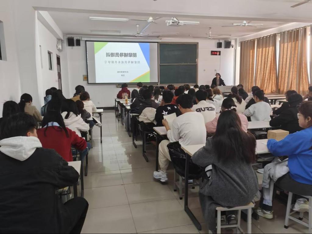 培训的主讲人是范秀老师。范老师以大学生心理健康为切入点,明确了朋辈心理辅导员的工作职责,强调了心理辅导在大学生心理健康工作中的重要性。最后案例分析,列举了在实际工作中可能面临的各类情况,并详细阐释了如何运用专业知识与技能做好日常心理辅导及处理突发状况。