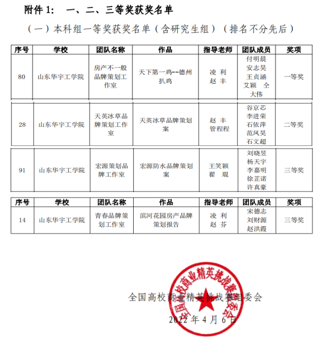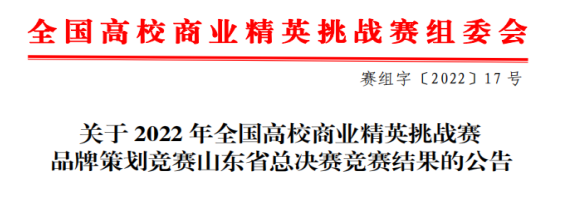由中国国际贸易促进委员会商业行业委员会、中国国际商会商业行业商会、中国商业文化研究会和中国商业经济学会联合主办的2022年全国高校商业精英挑战赛品牌策划竞赛山东省总决赛(全国普通高校大学生竞赛排行榜赛事),于2022年4月2日落下帷幕。本次大赛共有来自全省45所高等院校参赛,共385支参赛队伍,经过角逐,世俱杯sjb官网房地产开发与管理和市场营销专业的付明晨、安志昊、仝大伟和宋德志等18名学生在此次山东省总决赛中获得一等奖一项、二等奖一项和三等奖两项的好成绩!