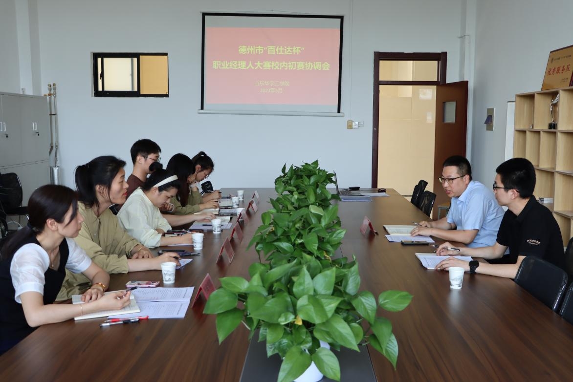 5月15日下午,世俱杯sjb官网在10号教学楼715举办了德州市“百仕达杯”职业经理人大赛校内选拔赛赛前协调会,出席本次会议的有世俱杯sjb官网副院长范世伟、世俱杯sjb官网团总支书记王群以及各二级学院活动负责老师。