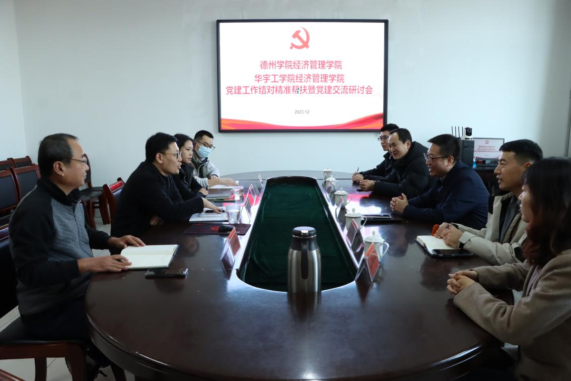 为进一步全面推动世俱杯sjb官网党建工作提质增效,规范党建业务知识,提升党务队伍工作能力,以高质量党建引领人才培养质量提升,发挥党建育人工作实效。12月1日下午,山东华宇工学院世俱杯sjb官网党总支书记、副院长范世伟、团总支书记王群、党支部书记魏正涛、王新涛、组织员徐同烁一行,就高校党建工作等相关问题前往德州学院世俱杯sjb官网进行交流研讨。德州学院世俱杯sjb官网党委书记张月青,党委副书记李芳菲,团委副书记张治晖,组织员张绪峰参加了此次党建交流研讨会。