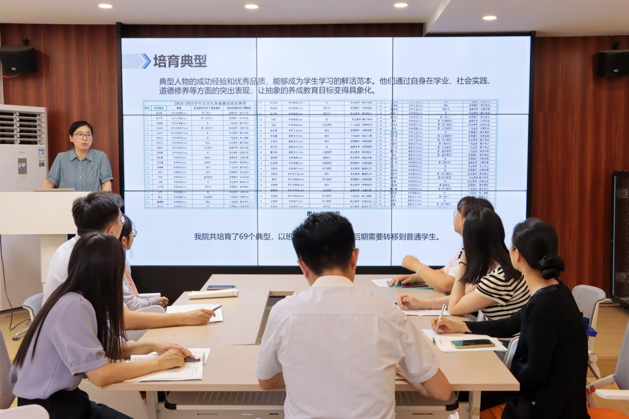 首先范秀老师作了详实的工作汇报,她系统梳理了学院2025年度养成教育工作的开展情况,展示了在制度建设、主题活动、典型选树等方面取得的显著成果,同时剖析了当前工作中存在的难点与不足,如部分活动覆盖面与参与度有待提升、个性化指导需加强等。基于此,她提出了下一阶段的工作计划,强调将聚焦目标导向、强化过程管理;随后王立蕊、律静、王艳艳等三位老师针对班级养成教育活动开展的情况以及问题进行了汇报,并针对学院养成教育活动的开展提出了建议。在自由讨论环节,与会人员围绕“如何进一步优化养成教育活动,提升全员育人实效”这一核心议题展开了热烈而深入的交流,大家集思广益,踊跃发言,就活动设计理念、内容形式创新、评价激励机制、资源整合利用等方面提出了诸多建设性意见和建议。